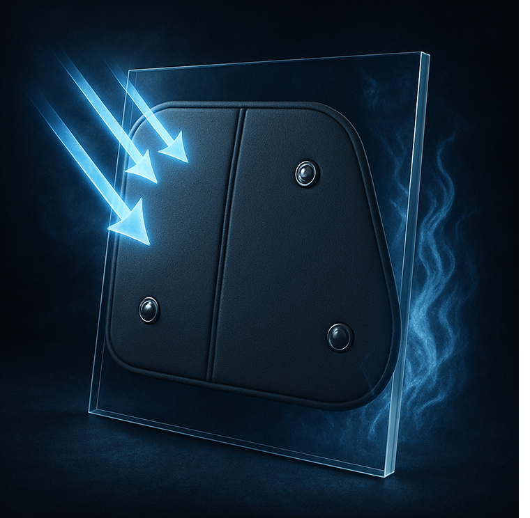 真夏の直射日光と車内温度上昇に挑む、高密度遮光とウレタン断熱の多層構造サンシェード。熱の侵入を防ぎ、快適な車内環境を保ちます。さらに視線を遮る設計でプライバシーを守り、車中泊や仮眠、着替え時にも安心。光・熱・音を抑えた静かな空間は、快適な睡眠を支え、防犯や災害時には密閉された“もうひとつの部屋”として活躍します。紫外線による内装劣化も防ぎ、愛車の価値を守る、多機能かつ信頼性の高い一枚です。