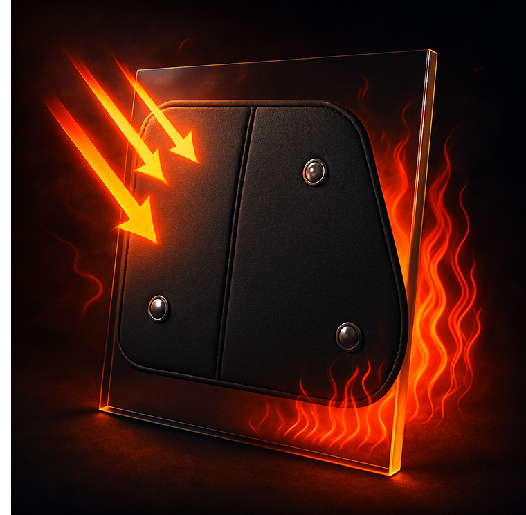 真夏の車内温度上昇を防ぐため、高遮光+ウレタン断熱構造で熱を抑える。